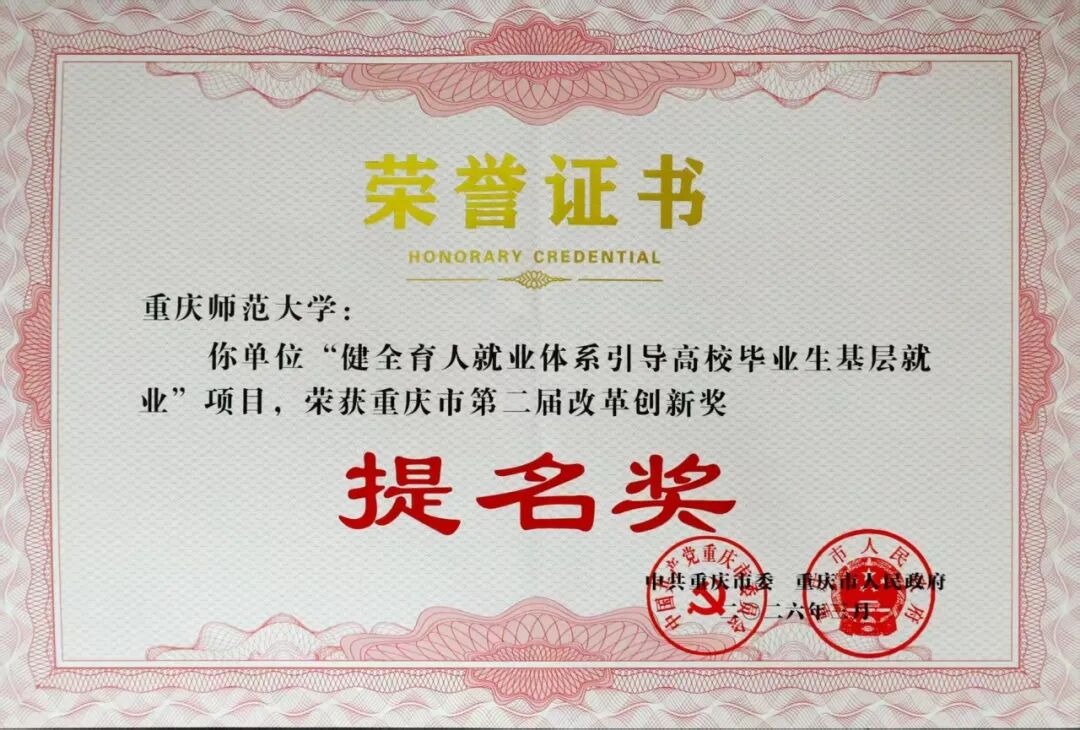米乐官网《健全育人就业体系引导高校毕业生基层就业》项目荣获重庆市第二届改革创新奖