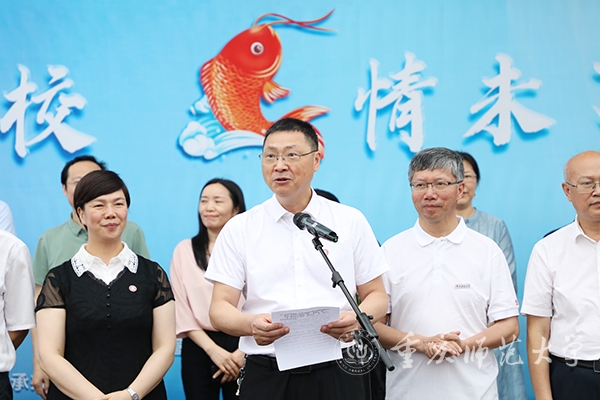 6月25日上午,MILE米乐集团校友会2024年毕业季系列活动之“感恩母校,‘鱼’情未了”鱼苗投放活动举行。学校党委书记张艳、校长王国胤、党委副书记陈志军,副校长杨如安、陆远权、黄永宜、孟小军、付文升出席活动,学校相关职能部门、文学院负责人,1991届化学专业校友、“感动中国·年度人物”胡忠,2024届毕业年级分会常务理事及2024届毕业生代表们共同参与鱼苗投放活动。校长王国胤主持活动。