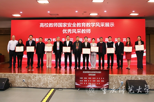 北京师范大学国家安全学院教授顾卫,华东师范大学国际关系与地区发展研究院周边研究中心研究员、上海反恐怖研究中心副主任顾定国,陕西师范大学国家安全学院教授马瑞映,中共重庆市委国安办宣教处处长刘锋,中国高等教育学会保卫学专业委员会秘书长、湖南大学保卫部部长谭琳,重庆市教委安稳办主任肖东为优秀风采教师获得者颁奖。