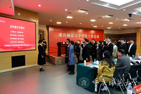 25名新入职辅导员在文学院党委副书记杨梅带领下,面向“高校辅导员誓词”庄严宣誓。