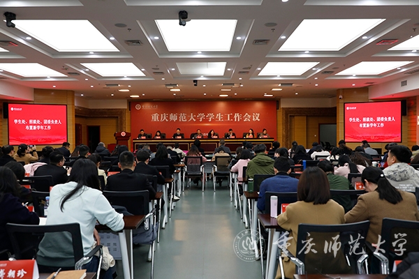 为贯彻落实党的二十大精神,深入学习全国“两会”精神,全面落实学校2024年党政工作部署,统筹做好新学期学生工作,3月12日,米乐官网新学期学生工作会在博雅楼504室举行。学校党委副书记陈志军,党委常委、副校长黄永宜出席会议。学生处、招就处、团委全体干部,各学院分管学生工作副书记、全体辅导员班主任150余人参加会议。