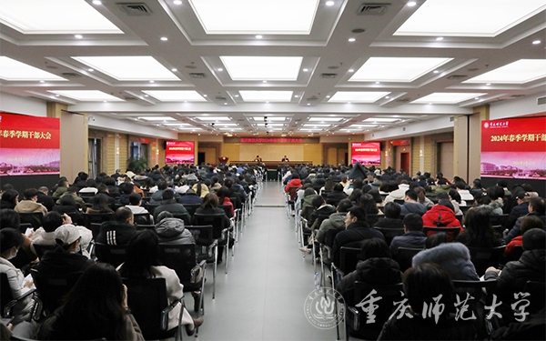 张艳提出,要深入贯彻2024年全国教育工作会议精神和2024年重庆市教委工作部署安排,深化一个主题、抓牢三件大事、抓实八项重点,真抓实干唯实争先,奋力做好2024年度重点工作。一要落实“党建统领”事业高质量发展行动计划,为事业高质量发展提供坚强保障;二要落实“以本为本”人才培养提质行动计划,培养担当民族复兴大任的时代新人;三要落实学科科研人才“三者联动”提能行动计划,全面提升学校核心竞争力;四要落实“重师文化”启智润心提升行动计划,传承弘扬重师核心文化理念,以校庆为契机提升学校知名度、美誉度和影响力;五要落实“数字赋能”学校变革行动计划,推进形成实战实效支撑能力;六要提升内部治理现代化能力,保障学校各项工作顺利开展;七要落实“全员参与”共建共享行动计划,进一步凝聚干事创业强大合力;八要统筹抓好各项工作落实,进一步提振高质量发展态势。
