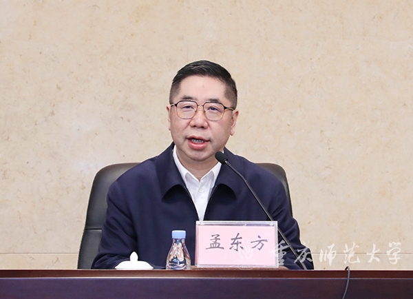 孟东方在讲话中指出,张艳书记的报告主题聚焦,重点突出,任务明确,希望党员干部充分领会,认真贯彻落实,做好传达学习和安排,统一思想,形成共识,使各项工作落到实处。就抓好各项工作落实,孟东方提出三点希望:一是保持发展定力,一张蓝图绘到底。面对新阶段、新任务、新要求,要锚定目标,保持定力,凝聚合力,咬定青山不放松,一张蓝图绘到底,以坚定的信念,昂扬的斗志,奋进的姿态,应势而谋、顺势而为、迎势而上,促进各项事业发展蒸蒸日上。二是坚持守正创新,不断增强发展动能。始终坚持党委领导下的校长负责制,抓牢顶层设计统筹推进,继续打造重师“奋进共同体”,不断推动事业健康稳步向前。三是勇于担当作为,促进各项工作落地见效。要不断提高政治站位,不断完善工作机制,不断增强干部担当作为的意识和能力。
