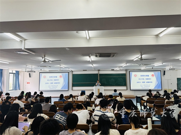 杨军以“初心不改,向美而行”为主题开展讲座。他剖析了区县教师数量过剩、学生家长对教师专业素养要求不断提升、教师岗位竞争显著加剧等教育现状,并表示教育事业事关国运兴衰、家庭幸福和学生个人命运,希望优师生不忘报考初心、涵养教育情怀,珍惜大学时光、规划大学生活,积极参加社会实践、不断提升自身素养,努力成长为四有好老师。