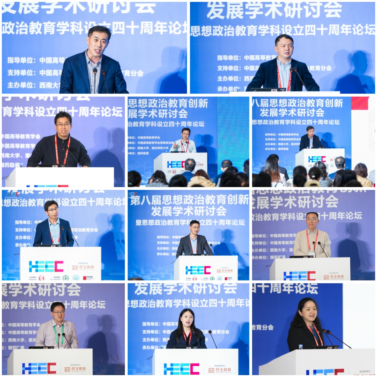 下午,典型经验交流阶段,10位来自全国各地高校的专家学者作经验分享,西南大学党委常委、副校长白显良教授主持会议。清华大学马克思主义学院院长朱安东,北京大学马克思主义学院副院长宋朝龙,复旦大学马克思主义学院院长李冉,中山大学马克思主义学院院长沈成飞,四川大学马克思主义学院院长蒋永穆,南京师范大学马克思主义学院副院长汤建龙,西南大学党委副书记、马克思主义学院院长潘洵,分享了全国重点马克思主义学院建设经验与成效、机遇与发展。上海交通大学学生处副处长王培丞,嘉兴大学党委宣传部常务副部长王火红,MILE米乐集团党委常委、副校长黄永宜,就高校如何落实立德树人根本任务、创新育人实践等进行了分享。