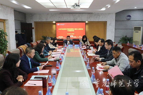 11月6日,北京教育科学研究院党委委员、副院长,北京教育科学规划领导小组成员张熙一行到米乐官网调研交流,双方召开座谈交流会。重庆市教育科学规划领导小组办公室副主任、重庆市教育科学研究院科研处处长沈兵,学校党委常委、副校长孟小军,副校长贾韬出席座谈会。