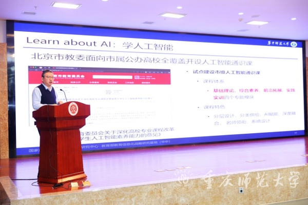 “人工智能是开辟教育发展赛道和塑造教育优势的一个重要突破口。”吴砥教授作题为《智能技术与教育的融合发展》的主题报告,介绍了智能技术对教育的影响,旨在分析其发展规律,探讨创新路径,研判发展趋势。他谈到,智能技术对教育改革带来深刻影响,尤其是通用人工智能大模型的普及,对教育的环境、内容、方法等各方面都带来改变。教育系统必须正视这一形势,及时推进改革,构建全新的教育体系,培养适应数字时代、智能时代需要的人才。