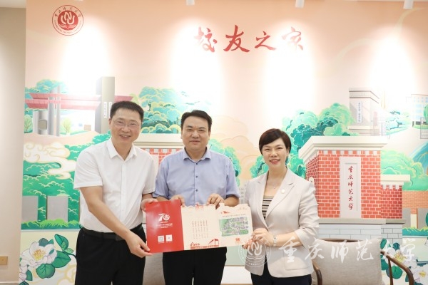张艳和王国胤代表学校向樊伟校友送上了70周年校庆邀请函,诚挚邀请樊伟校友于校庆时重返母校、共襄盛举。
