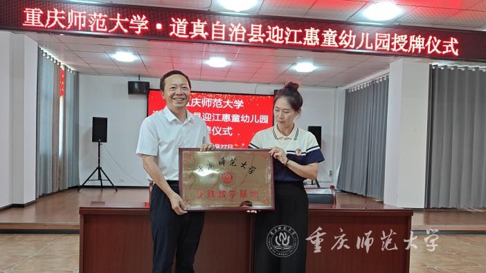 在与会双方领导共同见证下,学校教务处副处长毋志民与骆科生代表双方签署校地战略合作协议,与迎江惠童幼儿园园长刘敏签订实习基地协议。孟小军向刘敏园长授牌。