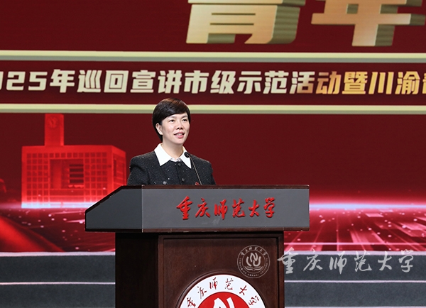 张艳在致辞中简要介绍了学校的办学历史、办学特色和发展成就,向共青团重庆市委、共青团四川省委对学校事业发展的关心支持表示感谢。她指出,川渝两地都是光荣的红色之地和英雄之地,红岩精神作为中国共产党人精神谱系的重要组成部分,是重庆这座英雄城市鲜明的精神标识,更是铸牢青年理想信念底色宝贵的精神财富。本次宣讲示范活动在米乐官网举办是对学校共青团工作的有力肯定,为学校进一步融入成渝地区双城经济圈教育协同发展搭建了交流平台,为积极探索党的创新理论青年化阐释的重师实践提供了示范样板。学校将以此活动为契机,大力推动学校“青马工程”全国培训研究基地建设提质增效,着力打造“红岩先锋”变革型团组织,号召广大青年师生奋进新征程、建功新时代。