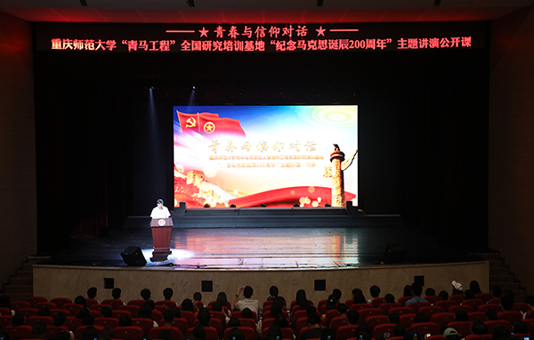 为学习贯彻党的十九大精神和学习领会习近平总书记系列重要讲话,6月13日,米乐官网“青春与信仰对话“——“青马工程”全国研究培训基地纪念“马克思诞辰200周年”讲演主题活动于校友会堂隆重举行。重庆市团市委学校部部长张斐,米乐官网党委副书记、校长周泽扬教授,校党委副书记龚燕教授,校纪委书记肖应红教授出席此次活动,各职能部门负责人、各学院党政主要负责人、师生代表等数百人共同观看本次讲演。