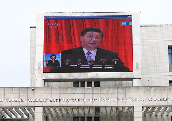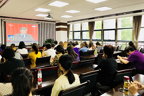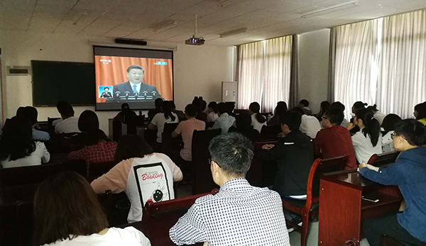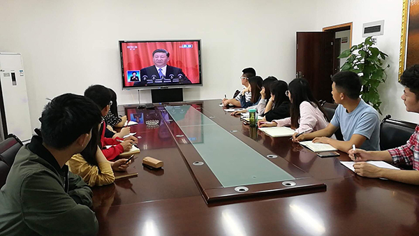 米乐官网党委中心组在综合行政楼309会议室集中收看了大会现场直播。中心组成员们认真聆听习近平总书记在大会上发表的重要讲话,就相关重点内容进行了深入交流讨论。全校各二级基层党组织、各学院也分别组织教职工、学生党员及入党积极分子、青马学员集中观看大会盛况。校党委宣传部利用演播大厅、图书馆广场大屏幕、大型会议室等,持续播放大会直播视频,营造热烈的校园学习氛围。