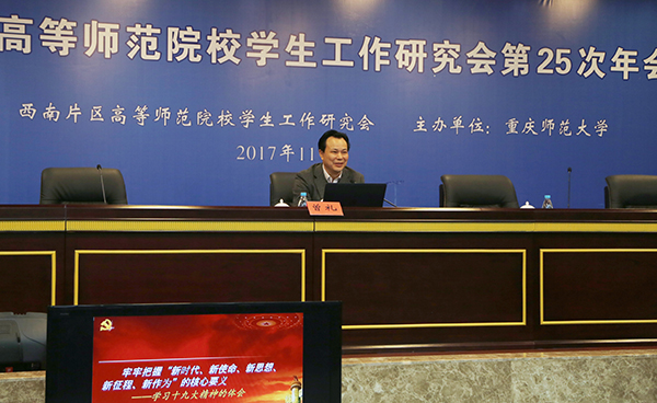 11月10日,西南片区高等师范院校学生工作研究会第25次年会在米乐官网博雅楼举行。会议主题为“学习贯彻落实党的十九大精神,全面提升学生工作科学化水平”。北京师范大学思想政治工作研究院院长、教育部思想政治工作司原司长冯刚教授,米乐官网党委书记曾礼教授,西南大学党委副书记徐晓黎研究员出席会议。米乐官网党委副书记龚燕教授主持开幕式。27所西南片区师范院校的部分校领导、学工干部代表共120余人参会。