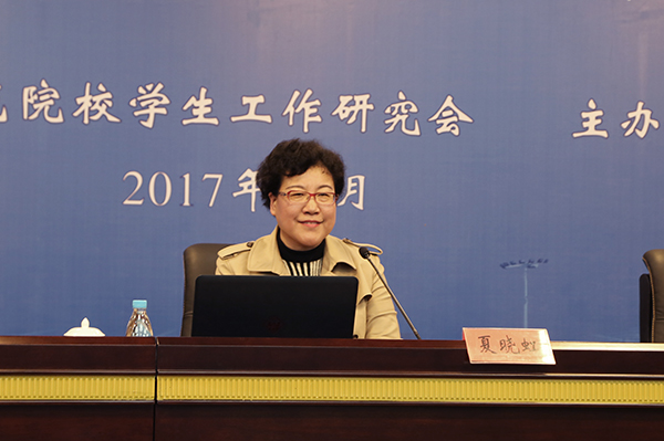中国高教学会辅导员工作研究会秘书处办公室主任夏晓虹,作了题为《坚定职业自信,提升专业素养》的报告。报告分析了高校辅导员队伍发展现状,指出了已有的优势和存在的不足,希望辅导员充分利用优质资源,坚定职业自信,在职业发展中提升专业素养。报告诠释了辅导员作为高校思想政治工作者的使命感、责任感、自豪感,指明了提升高校辅导员队伍职业能力和专业素养的路径与方法,对进一步加强辅导员队伍建设、全面提升思想政治教育工作质量和水平有重要指导意义。