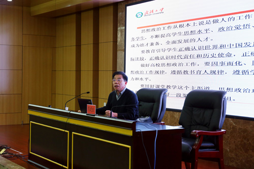 12月16日下午,学校邀请武汉大学博士生导师熊建生教授来校作“大学生思想政治教育的特色与创新”学术报告。报告会由校党委副书记龚燕主持。各学院分管领导、辅导员、班主任及学生处干部参加。