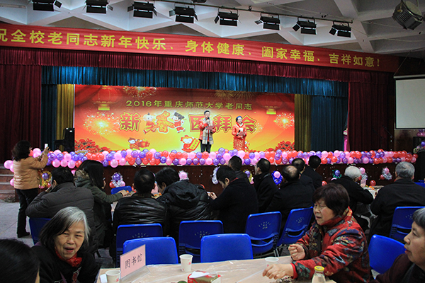 1月14日下午,米乐官网在老校区学生活动中心举办老同志新春团拜会。300多位老同志欢聚一堂,共迎新春。会场内外处处洋溢着喜庆的节日气氛。邓卓明书记、周泽扬校长、陈志军副校长出席团拜会。团拜会由离退休处处长任鸣和副处长刘艳主持。