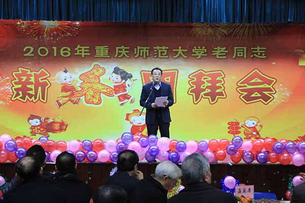 团拜会上,陈志军副校长代表学校党政向老同志们致以新春祝福,并通报了学校2015年的改革发展情况。他谈到,2015年学校紧扣内涵发展、提档升级战略,依法治校、有序推进科学发展,科研创新活力不断激发。全校上下同心同德、务实进取,各方面工作取得新进展:人才培养质量不断提高,学科建设水平明显提升,课题研究取得显著进展,社会服务能力有效增强,人才队伍建设扎实推进,国际交流与合作持续深化,支撑体系日益完善。2016年,学校将继续全面推进深化改革,推进学校内涵建设,提升学校的整体竞争力。他感谢老同志们为学校改革发展所做的贡献,并衷心希望老同志们多提建设性的宝贵意见,一如既往地关注和支持学校发展。此外,他对离退休工作给予肯定,并希望把老年大学建设成为老有所学的课堂、老有所乐的舞台、老有所为的阵地。