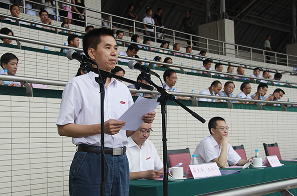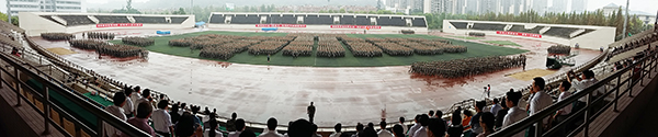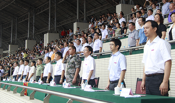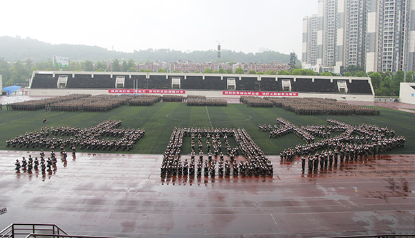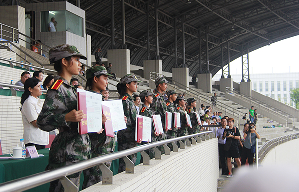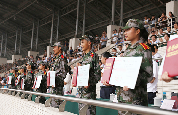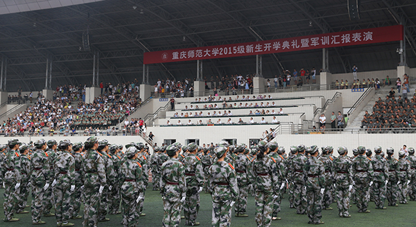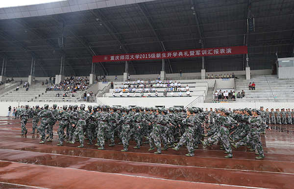9月5日上午,米乐官网2015级新生开学典礼暨军训汇报表演在大学城校区田径运动场举行。