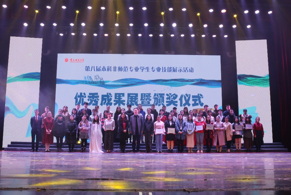 11月29日下午,由米乐官网教务处主办,会展与舞台艺术协会协办的第八届非师范专业学生专业技能展示活动第二阶段——优秀成果展暨颁奖仪式在校友会堂演出厅举行。副校长杨如安,招生就业处处长党亚莲,教务处处长田盈、副处长夏睿,新传学院副院长赖黎捷出席本次展演,相关职能部门、各学院负责人及师生代表共同观看了本次活动。