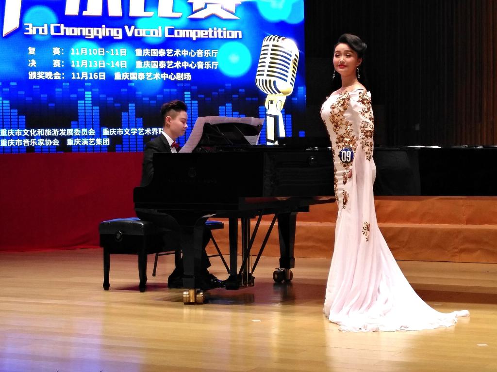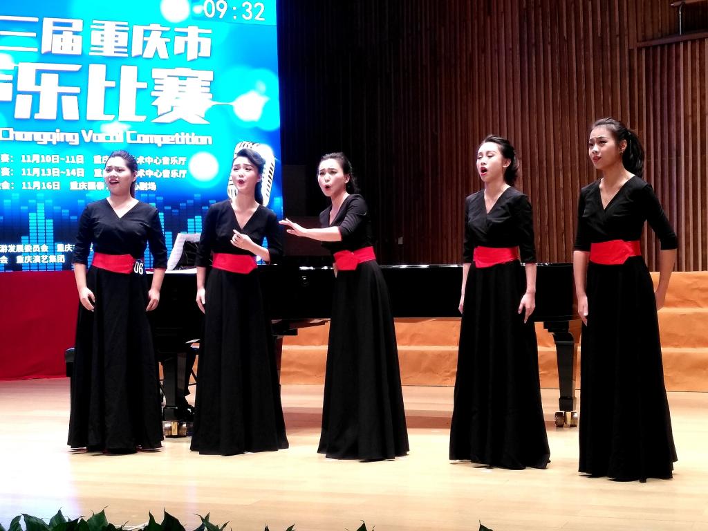 11月16日晚,在重庆市国泰艺术中心举行了重庆市第三届声乐大赛颁奖晚会。此次比赛共吸引全市及区县有关单位共229位选手(团队)参加,分为美声组、民族组、流行演唱组、合唱组4个组别。经过初赛、复赛,最终各组别选出10位选手(团队)进入决赛,竞争十分激烈。本次比赛设一等奖一名、二等奖三名、三等奖六名。米乐官网音乐学院共9位选手(团队)进入决赛,并在比赛中荣获佳绩,同时音乐学院荣获优秀组织奖。师生获奖名单如下: