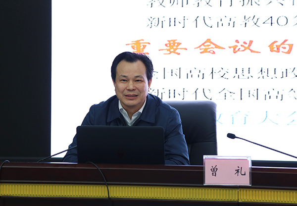 报告中,曾书记以“争做新时代合格教育工作者——深入学习贯彻总书记在全国教育大会上的讲话精神”为题作报告。整个报告紧扣习近平总书记在全国教育大会上的重要精神,理论联系实际,从“中国特色社会主义进入新时代,高等教育迎来新机遇”“根本任务:培养德智体美劳全面发展的社会主义建设者和接班人”“教育大计,教师为本”三个方面对全国教育大会精神作了系统阐述和深入解读。