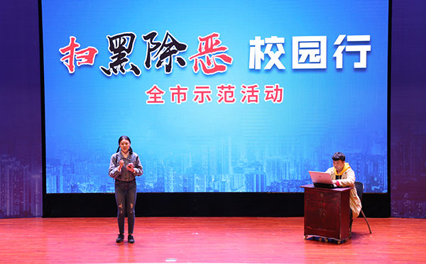 随后,重庆市综治办、扫黑办副主任张强表示,市委市政府高度重视扫黑除恶专项斗争,大家要深刻体会党和政府切实扫除黑恶势力,保障人民安居乐业、社会安定有序,国家长治久安的坚定决心。进一步深化思想认识,全面贯彻落实中央的决策部署和市委的工作要求,凝聚共识、勇于担当、积极作为,通过多种形式的宣传教育活动,增强广大师生对校园贷、网络诈骗等违法犯罪行为的甄别能力和防范意识,有效遏制黑恶势力的滋生空间,有效防范黑恶势力教唆青少年违法犯罪。