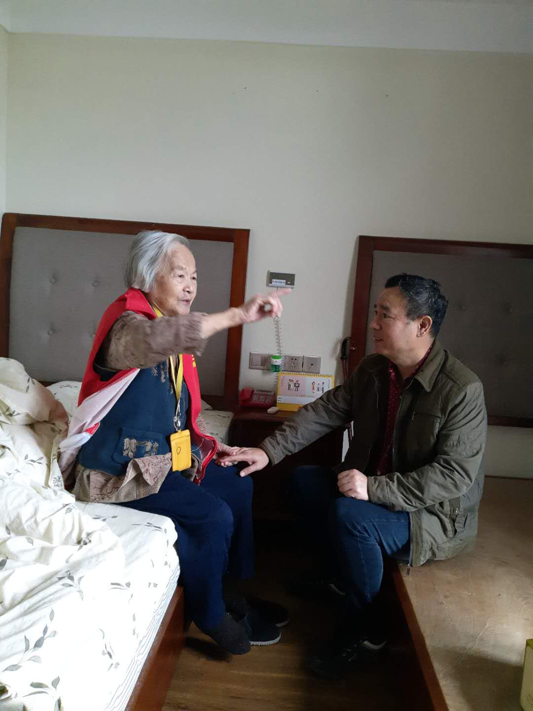 离退休处全体工作人员分成三个组,分别对40名离退休人员进行走访慰问。其中,年龄最大的96岁,最小的85岁。这些老同志有的居住在沙坪坝校区、大学城校区,有的居住在重庆主城的其他小区,还有一些居住在养老院;这40名老同志中,16人与子女同住,13人夫妇同住,5人单独居住,6人在养老院居住。当看到老同志们生活安康、精神矍铄时,慰问组一行由衷地感到高兴。每到一户走访对象家中,工作人员都详细了解他们的身体及生活状况,希望他们保重身体,过好晚年生活,同时表达了重庆市老干部局和学校对他们的关心和节日的问候。当接过慰问品时,老同志们纷纷表示:“感谢组织的牵挂和关心,我们心里感到很温暖、很高兴。”