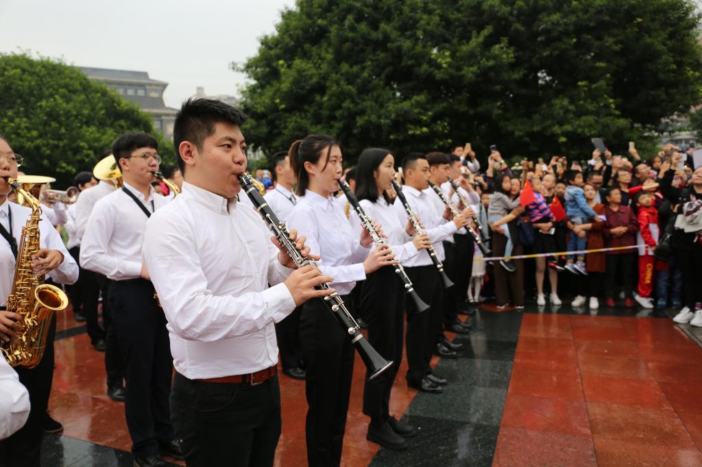 米乐官网管乐团受邀参加该系列活动并完成精彩的演奏,既锻炼了米乐官网管乐团的演出能力,培养了同学们的爱国主义思想,也展现了重师学子的独特风采。管乐队团学生侯锦江在接受电视台采访时表示,能够参加这样的活动,他感到荣幸和自豪,并祝福祖国更加繁荣富强。