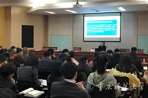 培训中,余跃主任以《高校毕业生就业创业工作形势、任务与工作规范要求》为题,从三个层面进行了讲解。一是正确认识当前高校就业创业工作形势。分别讲解了新时代高校毕业生就业创业工作新定位、新理念、新变化、新要求,党和国家领导人对就业工作的重要讲话;重庆市就业工作特点以及2019届毕业生的形势、特点以及问题分析等;二是2019年全市高校就业工作目标任务和工作重点。他谈到今年全市高校就业工作目标在去年基础上稳中有升,并从十二个方面阐述了怎样抓好今年就业工作;三是做好就业工作要注意掌握和遵守的规定和工作要求。结合去年国务院和市教委在就业创业工作专项督查中发现的问题,对就业工作中的相关规定进行了详细的介绍。互动环节,参训教师针对工作中出现的问题进行了提问,余跃主任逐一进行了解答。