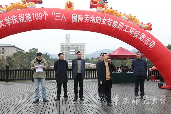 3月7日下午,以“男女同行,乐跑健身”为主题的教职工环校跑活动在大学城校区三春湖观景平台举行。校党委副书记、校长孟东方,校纪委书记肖应红以及相关领导莅临现场为女教职工们送上了温暖的祝福。来自各二级工会的22支由男女教职工混合组成的队伍参加了此次活动。
