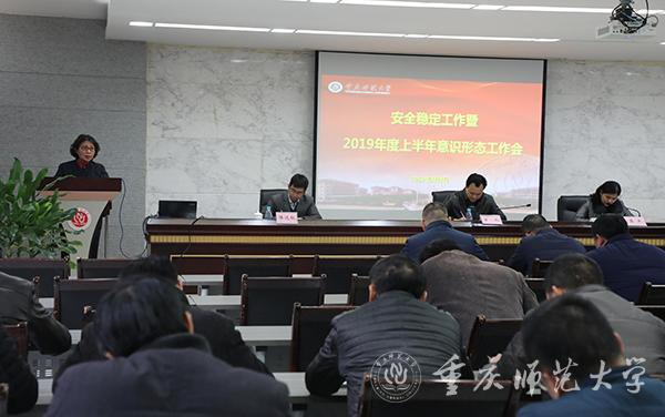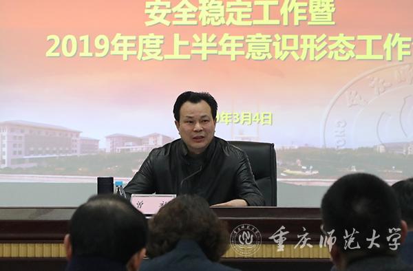 首先,保卫处处长唐加祥传达了全国学校安全工作电视电话会议精神和2019年全市学校安全工作会议精神。宣传部部长毛宇传达了2019年重庆市委宣传部长会议精神和市委教育工委意识形态工作专题会议精神,对本年度学校意识形态重点工作进行分析研判和安排部署。