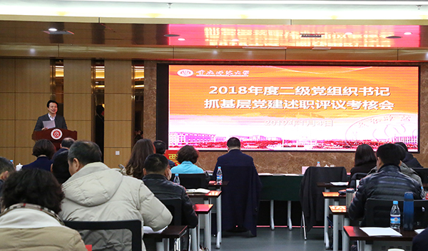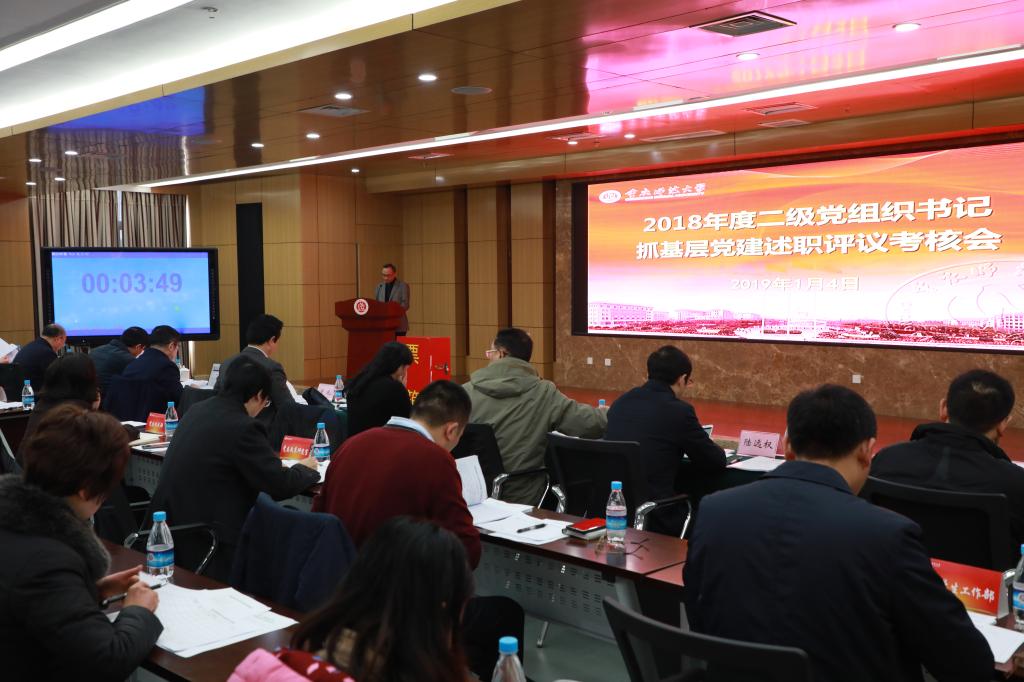 2019年1月4日上午,学校党委在博雅楼503会议室召开2018年度二级党组织书记抓基层党建述职评议考核会。会议由校党委书记曾礼主持,校党委常委,党群部门负责人,各二级党组织书记、副书记,党员干部群众代表参加民主测评。