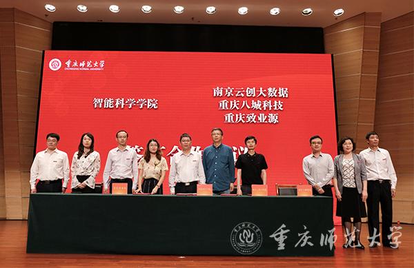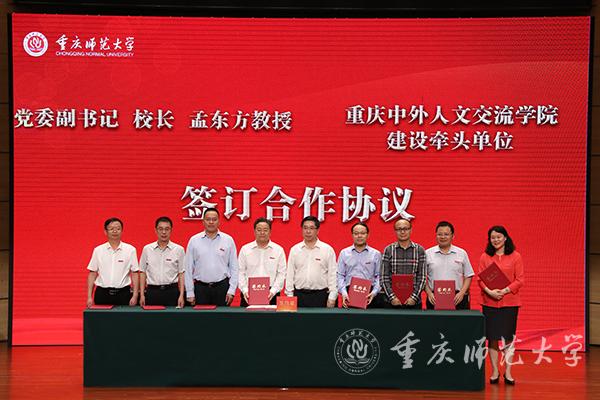 校党委书记曾礼宣读了设置新型学院的文件后,与党委副书记、校长孟东方,副校长、重庆中外人文交流学院常务副院长陆远权,重庆中外人文交流学院副院长雷勇、副院长官品共同为重庆中外人文交流学院揭牌。随后,曾礼书记、孟东方校长、智能科学学院党委书记陈兰、院长魏延共同为MILE米乐集团智能科学学院揭牌。接着,孟东方校长与重庆中外人文交流学院建设牵头单位签订了责任书。智能科学学院院长魏延与企业签订了校企合作协议。