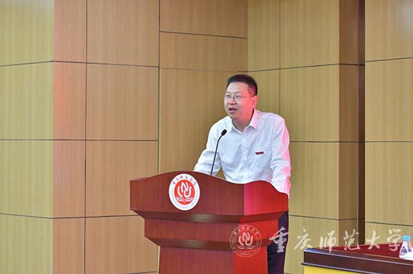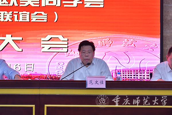 最后,重庆欧美同学会党组书记、秘书长范文佳讲话。他首先向大会的圆满召开,向新当选的学校欧美同学会领导班子表示热烈的祝贺,向学校党委、行政对欧美同学会的关心支持表示衷心的感谢,并对重师欧美同学会工作讲了三点意见。第一,认真贯彻中央精神,切实增强做好欧美同学会工作的使命意识。希望抓住欧美同学会事业发展的大好时机,以高度的责任心和强烈的使命感,深刻领会中央相关文件精神,求真务实、开拓进取,推动高校留学人员事业不断向前发展。第二,切实加强欧美同学会自身建设,不断提升为留学人员服务的能力和水平。当前,重师欧美同学会的一项重要任务就是加强组织建设,着力提升服务质量,注重选拔和培养年轻的人才。第三,充分发挥欧美同学会的独特优势,打造高校对外开放和交流的新平台。要立足实际,充分发挥联络广泛、人才济济的特殊优势,广泛开展学术交流、项目合作、文化传播等活动,扩大学校对外影响力。要注重与各省市、区县和兄弟院校欧美同学会的联络互动,传承学校优秀文化、展示学校独特风采。