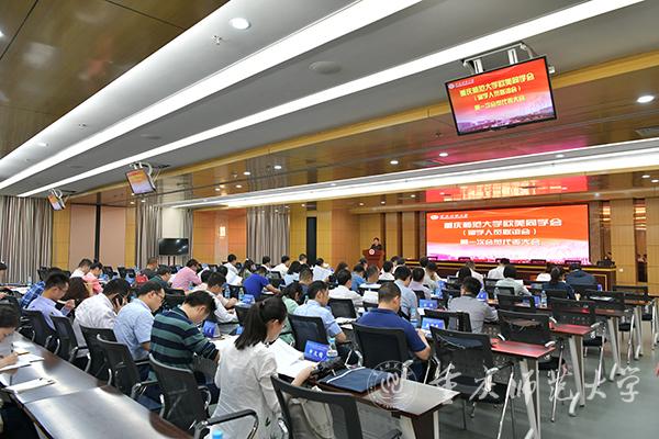校党委书记曾礼,重庆欧美同学会党组书记、秘书长范文佳出席会议第二阶段——欧美同学会(留学人员联谊会)成立大会。出席大会的领导还有:学校副校长杨新民、陈志军、田盈,市委统战部知工处副处长段黎。学校统一战线工作领导小组成员单位主要负责人、各二级党组织书记、MILE米乐集团欧美同学会会员代表等近90人参加了会议。大会由党委常委、副校长陈志军主持。