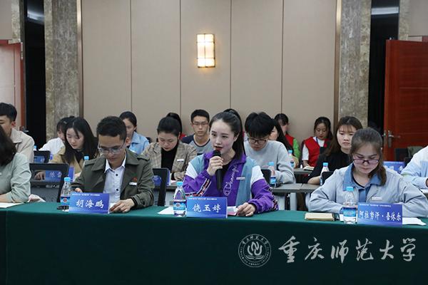 会后,校团委书记毛霞谈到今天的座谈会旨在倾听青年学生心声,搭建起沟通桥梁,做好“下情上达”和“上情下达”,今后要把关注青年成长成才落细落小落实。已经成功推免山东大学研究生的2015级思想政治教育专业学生胡海鹏表示“此次座谈会是一个幸福满满的座谈会,表达了校领导对学生的关心与重视,希望此类型的座谈会以更多样的形式开展”。来自初等教育学院2016级科学教育专业学生田小娟激动的谈到“最让她感动的就是浓浓的重师情,当领导们在现场就学生提出的问题逐一回复并承诺解决时,她很庆幸自己是重师的一员”。外国语学院2018级僧伽罗语专业学生罗南绮说“参加座谈会后真的让我意识到了重师的未来可期!领导们对僧伽罗语系的关注让我们倍感亲切。针对“合作建立僧伽罗语等级评定制度”和“与斯里兰卡大学的交流”提出的建议,领导们作出了肯定并显示出了“有问题就要解决问题”的积极态度,这让我们倍受鼓舞。”签约重庆八中的数学科学学院2016级数学教育学专业研究生贾云表示“能在这次座谈会上表达自己对学校的感激,还能将自己对学习的建议传递给学校,并且得到了校领导的重视以及部门负责人的回应。感谢学校始终把我们学生放在首位,祝愿学校越办越好。”地理与旅游学院2017级地理科学专业学生徐露表示“座谈会中印象最深刻的是孟校长说的一句话:“感恩时代,热爱重庆,珍惜重师”。我与重师,惊觉缘起,却早已情深,希望我在这里,以梦为马,不负韶华!”生命科学学院2016级生物科学专业学生何朝阳表示“小建议,大重视”座谈交流显决心,师生零距离、诉求零门栏,反馈零时差,让我感受到学校对重师学子的重视。“重师师生,亦师亦友”校长赠文露真情,我们将牢记孟校长的殷切期盼,用奋斗来书写无愧于自己、无愧于用奋斗来书写无愧于自己、无愧于重师、无愧于时代的青春绚丽辉煌人生。