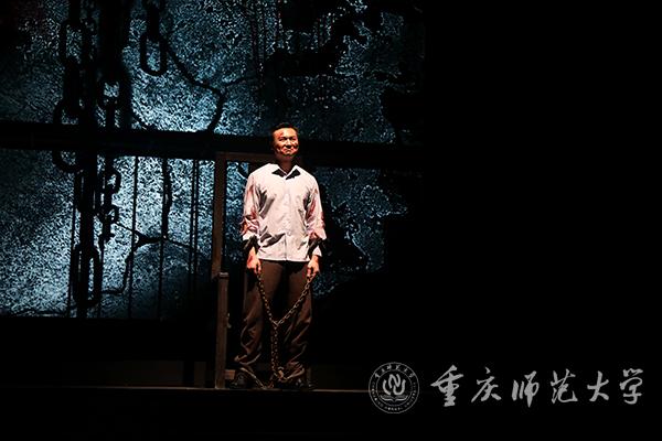 “这就是我——一个共产党员的自白,高唱凯歌,埋葬蒋家王朝!”剧中共产党员陈然高声朗诵“自白”书,全场掌声雷动。