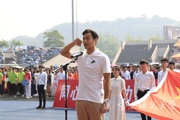 他指出,体育反映了人类追求卓越的永恒梦想,体现着一个民族的精神品格。增强师生体质,建设体育强国是中国梦的重要组成部分。田径运动会是米乐官网传统的体育赛事,更是展示米乐官网师生风貌、展现学校发展水平和凝聚师生情感的体育文化盛会。65余载风雨兼程,田径运动会见证了重师的变迁和发展壮大的辉煌历史,浓缩着学校艰苦卓绝的奋斗历程,镌刻着一代代重师人锐意进取的拼搏精神,已深深融入重师的文化内涵。目前,全校上下正深入贯彻学校第三次党代会精神,紧紧围绕“四大发展战略”,落实内涵式发展“九大任务”,全力推进教师教育特色鲜明的高水平综合性师范大学建设。他期待以此次运动会为契机,进一步砥砺师生意志,提振进取精神,汇聚各方建设力量。