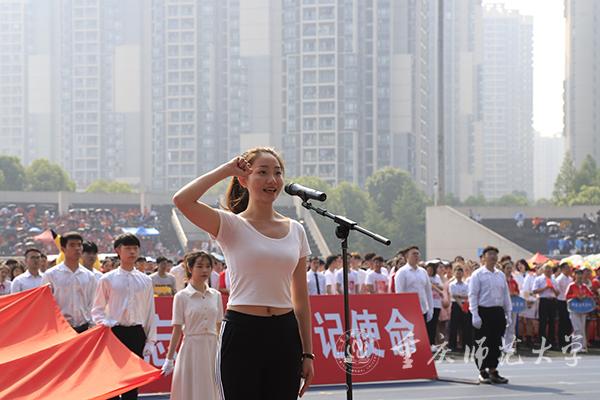 本届运动会运动员代表杨宏锦、裁判员代表任宇晗随后依次进行了庄严宣誓。