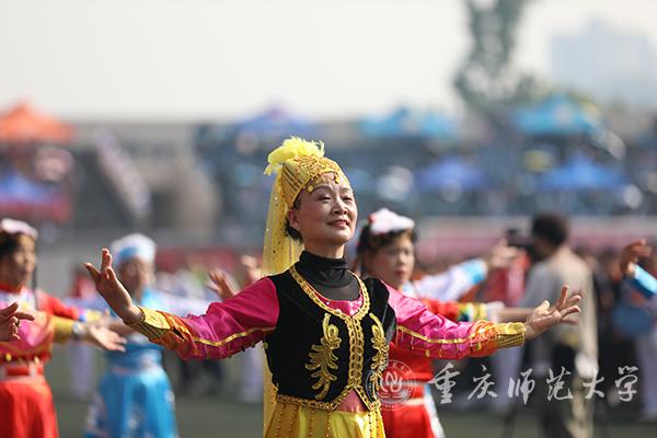 26个方队,26个创意,26种风采。全心全意为赛事护航的裁判员方阵率先出场,观众报以热情的掌声和欢呼声。马克思主义学院方队举牌组成了党旗和国旗图案,庆祝伟大祖国70华诞。收放自如、动静皆宜的队员身着长襟汉服,挥袖转身间,尽展文学院宜静尚武的从容姿态。数学学院方队组合出“+-×÷”四种运算符号、计算机与信息科学学院方队摆出了“4G变5G”的阵型、新闻与传媒学院方队凸显出平面设计软件图标,一一登场,展示出别样的专业风采。留学生们的异国服装风情万种,初等教育学院附属小学学生们的花式跳绳赚足了眼球。离退休工作处的老同志扬起笑颜,和着《五十六个民族五十六朵花》歌曲,呈现了一段活力无限的舞蹈。音乐学院用歌舞《爱我中华》《我和我的祖国》等经典作品,带来了一场文体结合的视听盛宴,展示出音乐学院师生的拳拳赤子之心。他们作为运动会承办单位,惊艳亮相,压轴出场,赢得了观众阵阵掌声。至此,与时俱进、亮点纷呈的入场式结束。