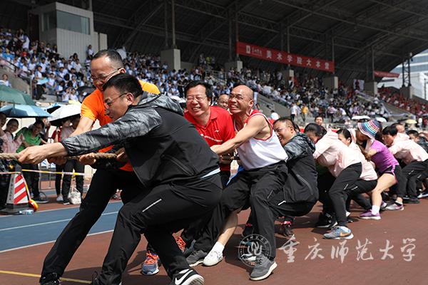 开幕式结束后,教职工拔河比赛随即举行,拉开了运动会比赛序幕。