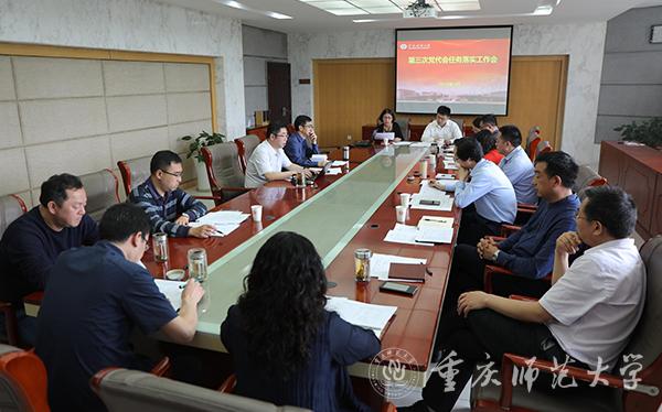 本次会议旨在贯彻落实第三次党代会精神,推进“1+4”五年行动计划编制。“1+4”的“1”是指党代会任务分解方案;“4”是指4个五年行动计划,包括“重师加快建设高水平本科教育五年行动计划”“重师加快建设高水平学科引领发展五年行动计划”“提升重师文化建设五年行动计划”和“重师师生员工参与高水平师范大学建设五年行动计划”。