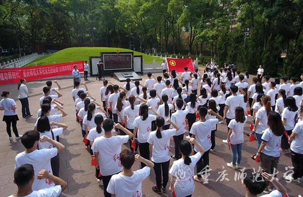 为激励和引领米乐官网团员青年大力弘扬以爱国主义为核心的伟大民族精神,坚定“四个自信”,矢志投身新时代夺取中国特色社会主义伟大胜利的新征程,4月21日,校团委在歌乐山烈士陵园红岩魂广场开展“青春心向党·建功新时代”主题团日活动。校团委书记毛霞、相关工作人员、青马中高级班学员代表以及第二十九期“菁英计划•学生干部培训班”成员代表等参加。