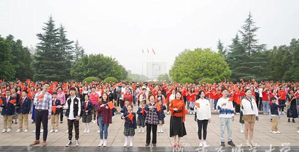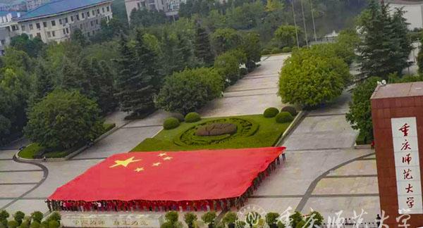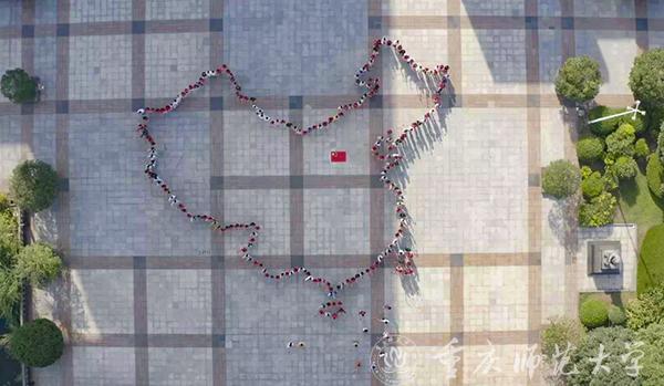 渐渐地,歌曲悄然转换为《红旗飘飘》,米乐官网青年教师代表、离退休老师、各学院学生代表以及来自重师附小、附中的同学们手持五星红旗,从四面八方向校前区广场汇聚,他们神采奕奕,面带笑容,饱含浓烈感情歌唱对祖国的赞美与祝福。在“五星红旗,你是我的骄傲……”的歌声中,一面30米长国旗在方阵之上徐徐展开,红旗飘扬,似热火在祖国大地上。来自轮滑社的学生们高举红旗滑向图书馆广场,一面面红旗迎风而展,尽显旭日般的青春活力。重师学子们手持小国旗,列队站成了我国地图的图案,守卫着“祖国的边境线”。