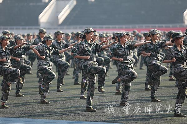 踏着雄壮激昂的《分列式进行曲》,各个方阵迈着铿锵有力的步伐依次经过主席台接受检阅,他们身着绿色的迷彩服,意气风发;他们踏着坚定的步伐,大步向前。女子军体拳表演拳风飒飒,展现出巾帼不让须眉的豪情;男子捕俘刀方队手持匕首,刺出、收回,动作迅速利落,举手投足间彰显男儿血性;立正、稍息、敬礼……列队方队表演整齐规范,刚健有力;内务整理与演习表演令人耳目一新,奔跑、翻滚、匍匐前进,展示了新生良好的精神风貌,赢得在场师生的阵阵掌声。