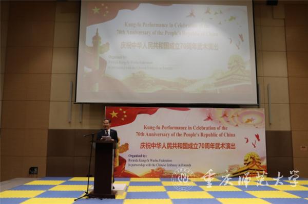 卢旺达奥委会副主席费斯图斯·比齐马纳、卢旺达武术协会主席马克·乌维拉吉耶分别致辞,感谢中国政府和在卢中资企业长期以来为卢旺达各领域发展所做的积极贡献。他们表示,作为中国人民的好朋友、好伙伴,卢人民愿与中国人民一同庆祝中华人民共和国成立70周年,分享喜悦和幸福。