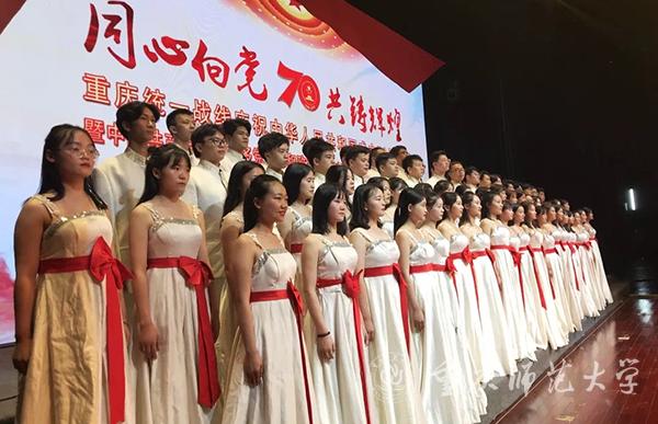 9月11日晚,“同心向党·共铸辉煌”——重庆统一战线庆祝中华人民共和国成立70周年暨中国共产党领导的多党合作和政治协商制度确立70周年文艺演出在重庆人民大厦会堂举行。全市统一战线系统2000余人观看演出。