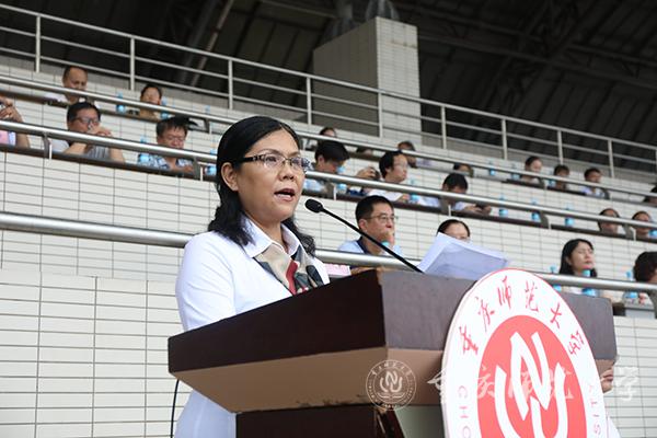 来自化学学院的优秀青年教师代表王燚发言。他表示老师们会秉持爱岗敬业的信念,严以律己、为人师表,真诚关爱每一位同学,做同学们的良师益友;也将秉承育人为本、育德为先、育人为重的教育理念,不断提高自己的专业素质和教育水平。他希望同学们能成为志存高远的有志人、快乐学习的智慧人、团结友爱的独立人和新时代奋斗路上的追梦人。