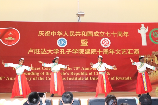 2019年7月10日,卢旺达大学孔子学院10周年系列庆典活动之一的文艺演出序曲正式开幕。当地时间下午两点半,卢旺达大学孔子学院成立十周年大型文艺汇演在卢旺达大学医学院校区大礼堂隆重举办。中国驻卢旺达大使馆政务参赞邢玉春女士、远赴卢旺达的米乐官网副校长陈志军、卢旺达大学校长恩乔罗格、各大学中学校长、在卢中资机构代表、华人华侨及孔子学院师生500余人出席此次庆典。