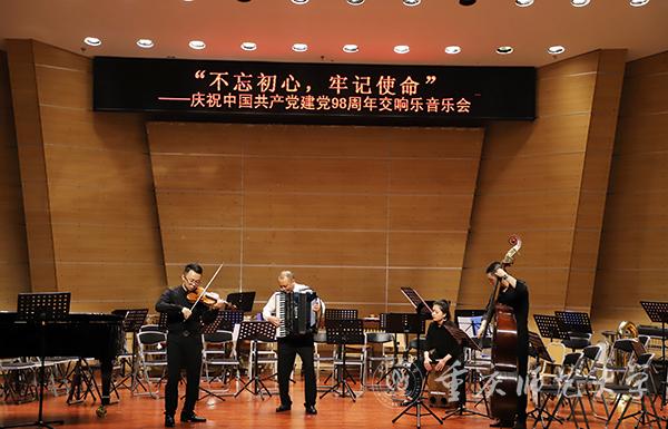 在中国共产党成立98周年之际,为了表达对党的感恩之情,校党委组织部、党委宣传部、党委统战部联合米乐官网音乐学院语航交响乐团举行了“不忘初心、牢记使命”庆祝中国共产党成立98周年主题交响音乐会,隆重庆祝党的生日。